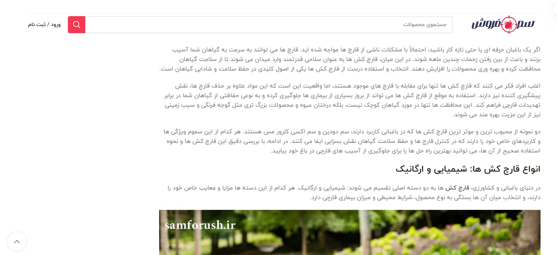 پروژه سم فروش یکی از همکاریهای محتوامحور ما در آژانس دیجیتال مارکتینگ فِی بود که تمرکز آن بر تولید محتوای تخصصی، دقیق و سئو شده برای وبسایت این برند فعال در حوزه فروش انواع سموم کشاورزی و آفتکشها بود. هدف اصلی این پروژه، ارتقاء جایگاه سایت در نتایج جستجو، افزایش ترافیک هدفمند و ارائه اطلاعات مفید و قابل اعتماد به مخاطبان تخصصی این حوزه بود.